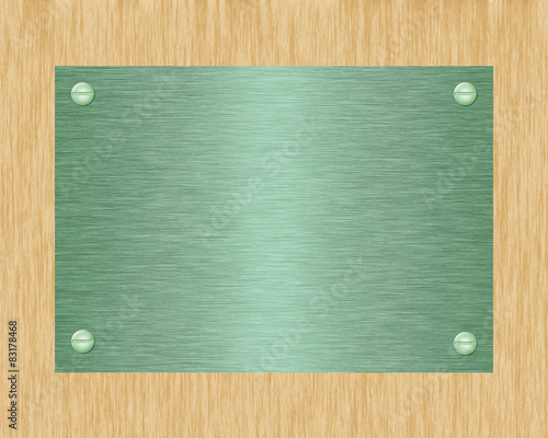 Obraz premium Green metal plate on board.