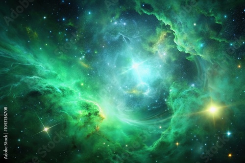 © Atittaya, Obraz premium Green minimalist space nebula background