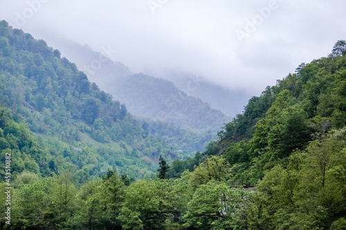 © Nadejda, Fototapeta premium Green misty hills and mountains of Georgia