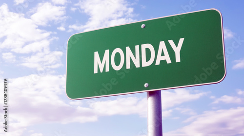 © Nazlykhan, Obraz premium Green monday sign against clear blue sky with white clouds