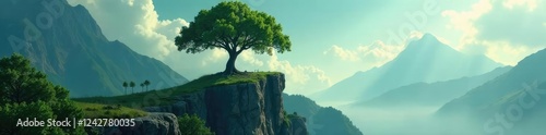 © AiGallery, Obraz premium Green monolith pierces skyward with roots deep, mountain, tree, roots