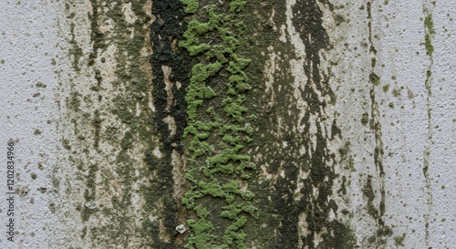 © IbragimovN, Fototapeta premium Green moss and streaks on weathered wall surface texture background
