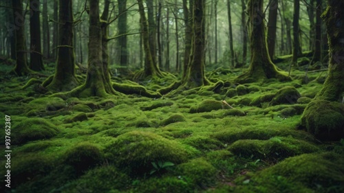 © Studio 100, Obraz premium Green moss forest nature texture background. Generative Image