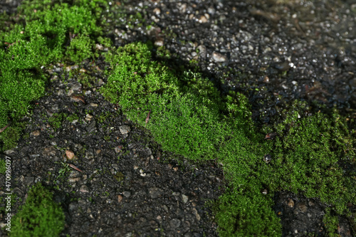 Fototapeta premium Green moss growing on wall background