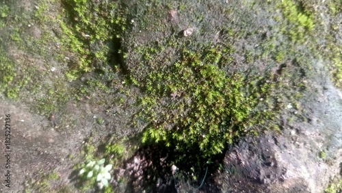 Obraz premium Green Moss Growing on Wet Stone Surface Texture