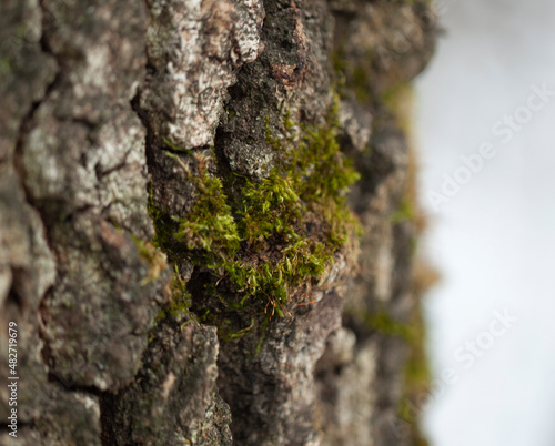 Obraz premium Green moss on a tree bark