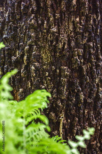 Naklejka premium Green MOSS on tree bark in the rain forest