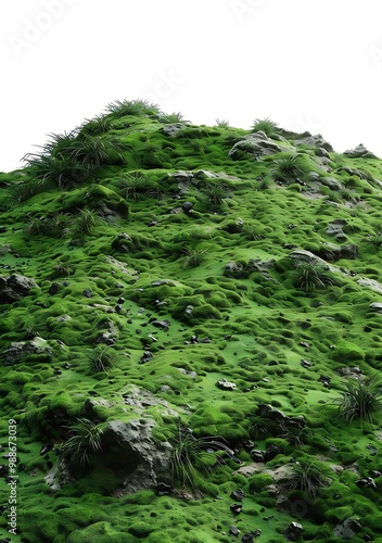 Fototapeta premium Green Mossy Hill with Rocks Background