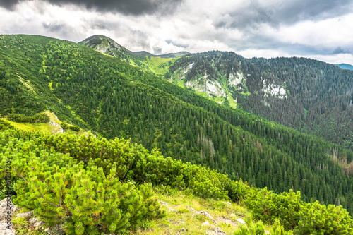 Fototapeta premium Green mountain forest, landscape