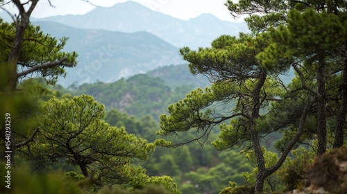 Obraz premium Green mountain forest view