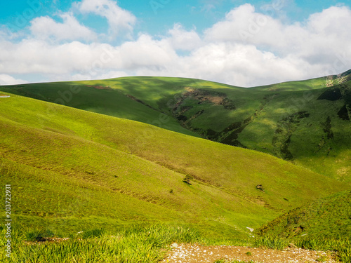 © sanedor, Fototapeta premium Green mountain landscape and blue sky