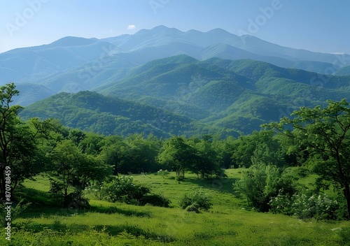 © duyina1990, Obraz premium Green mountain range landscape