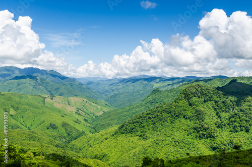 © wuttichok, Fototapeta premium green mountains and blue sky with clouds