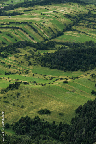 © Fotolixir, Fototapeta premium Green Mountains, Forests and Meadows from Above, Summer