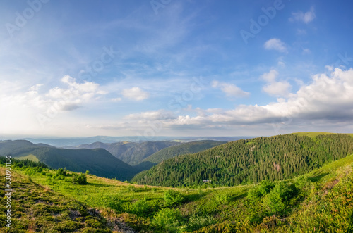 © Wheat field, Naklejka premium Green mountains in sunny day; natural landscape