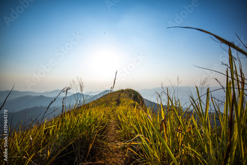 © arwiyada, Obraz premium Green mountains in the fog. Seamless background.