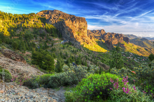 Fototapeta premium Green mountains of Gran Canaria island at sunset, Spain