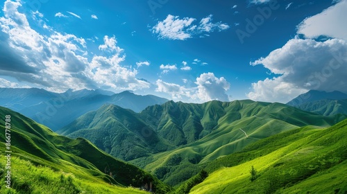 © AkuAku, Fototapeta premium Green Mountains under the Blue Sky