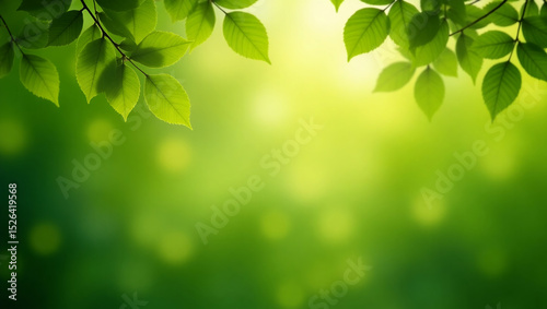 © Aleksandra, Naklejka premium Green natural bokeh background with soft sunlight coming through the foliage. Background
