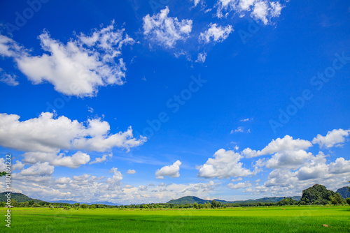 © noppakit rattanathon, Fototapeta premium Green nature, sky, beautiful clouds
