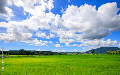 © noppakit rattanathon, Fototapeta premium Green nature, sky, beautiful clouds
