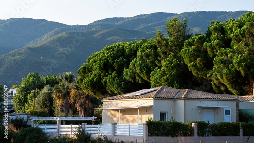Fototapeta premium Green nature with mountains on background in Asprovalta
