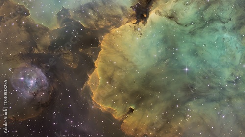 © chenhui, Obraz premium Green_nebula_green_galactic_background