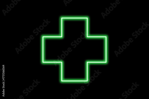 Fototapeta premium Green Neon Medical Cross Symbol on Black Background