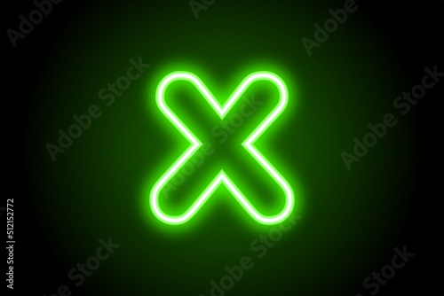 Obraz premium Green neon x sign icon on black background