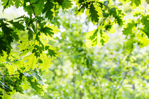 Fototapeta premium green oak foliage in summer sunny day