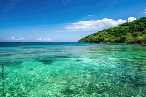 © Vlad, Fototapeta premium Green Ocean in West Bay Beach, Roatan, Honduras. Tropical Paradise Coastline in Central America