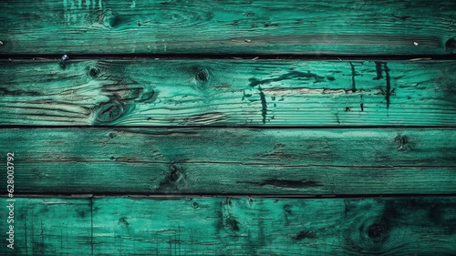 Obraz premium Green old wood background. Bright green wooden planks background. Generative Ai