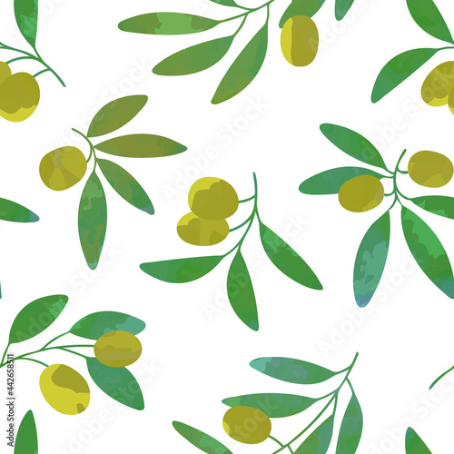 Naklejka premium Green Olive Branch as Organic Product Vector Seamless Pattern