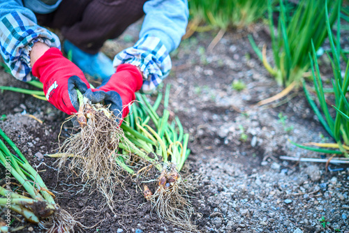 © YUZUMI, Naklejka premium ネギの収穫 green onion