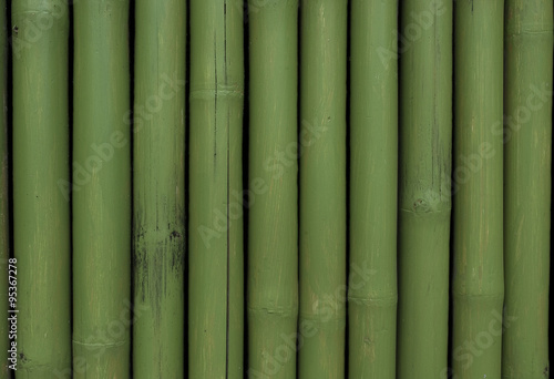 © saran_poroong, Fototapeta premium Green painted bamboo wall