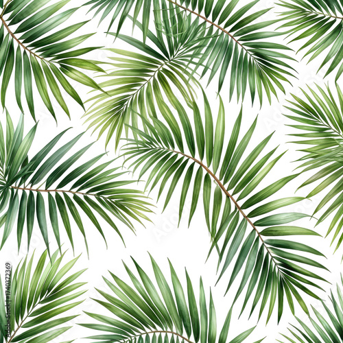 © Nani, Obraz premium Green palm branches, repeat pattern, seamless texture on black