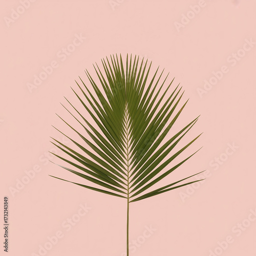 © Mostofakhan, Fototapeta premium Green Palm Leaf on Light Pink Minimal Background