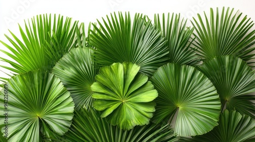 © afridwi, Fototapeta premium Green Palm Leaves Against White Background
