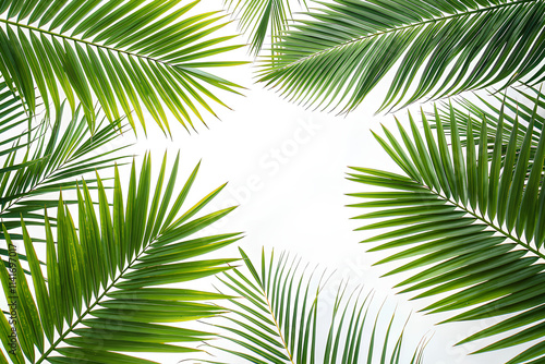 Fototapeta premium Green palm leaves border, cut out, on isolated white background, Clipping path.png