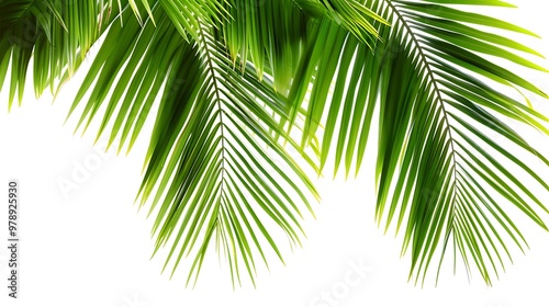 Naklejka premium Green palm leaves isolated on white background with copy space for text.