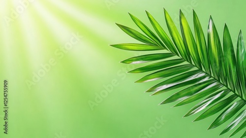 © Hannah, Obraz premium Green Palm Leaves on Blurred Background for Palm Sunday Concept