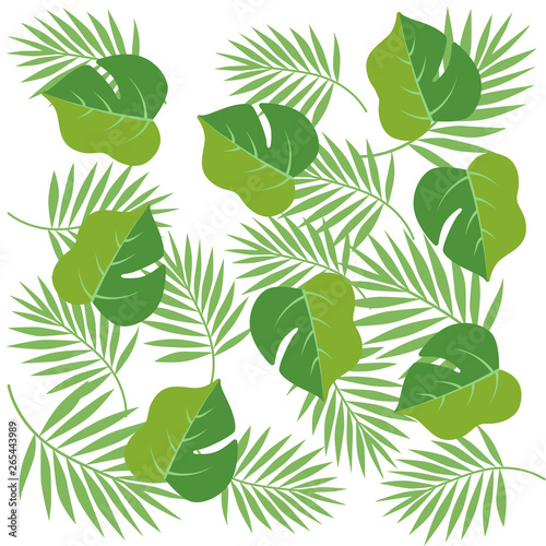 Fototapeta premium Green palm leaves summer pattern vector illustration