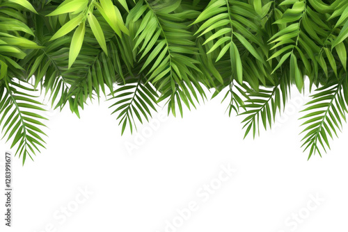 © Irfan Mulyana, Obraz premium Green Palm Leaves with Black Background, Transparent Objects, Seamless Pattern Design