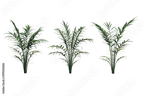 © Waypixel, Naklejka premium Green palm tree isolated on white background. 3D rendering image.