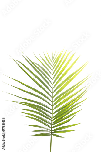 © ddukang, Fototapeta premium Green palm tree leaf on white background.