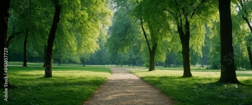© Panuwat, Fototapeta premium Green Park Landscape with Trees in Soft