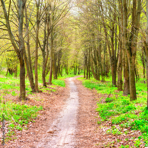© Pavlo Vakhrushev, Fototapeta premium Green park with green spring trees and grass