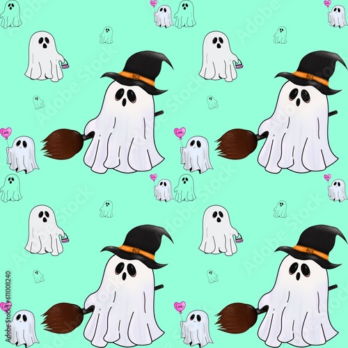 © Manatda, Obraz premium Green pattern with monster boo