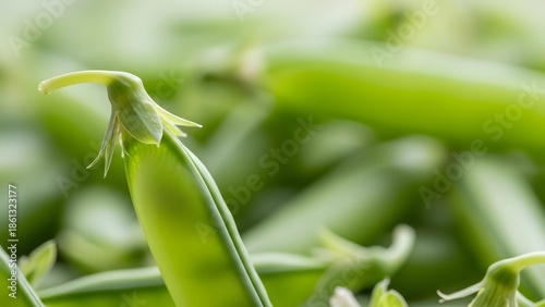 © Digital Vision Lab, Obraz premium Green pea pod in a lush garden with blurred background
