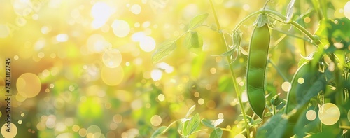 Obraz premium green peas with bokeh background in a field, light gold and yellow, ethereal abstract, color photography, lens flares